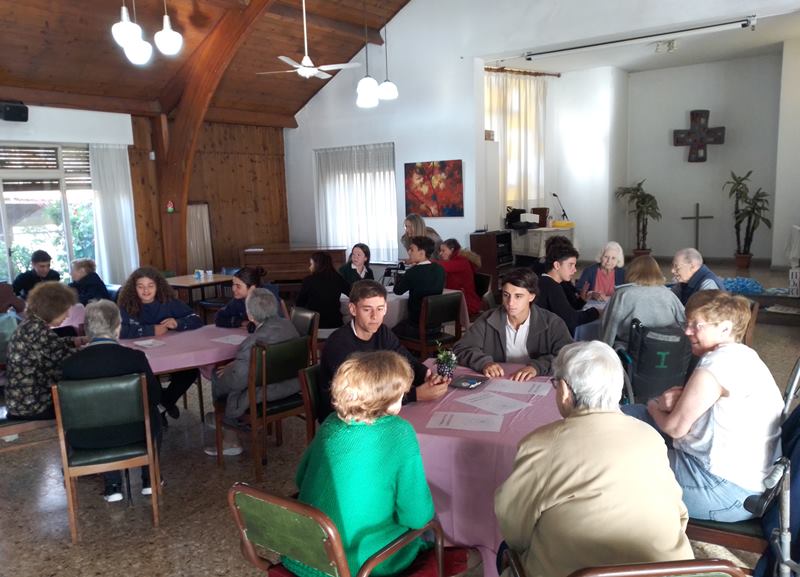 Además, la visita es recíproca y algunos de los residentes también van a los colegios, donde los chicos pueden mostrar sus espacios y compartir experiencias desde el aula como una obra de teatro, una clase de química o de arte, una merienda, etc. También Los Pinos realiza al inicio del ciclo escolar un taller en los colegios a través del cual se busca desmitificar el concepto de persona mayor y de hogares para adultos mayores, además de preparar y sensibilizar a los alumnos para el trabajo en conjunto durante todo el año lectivo.