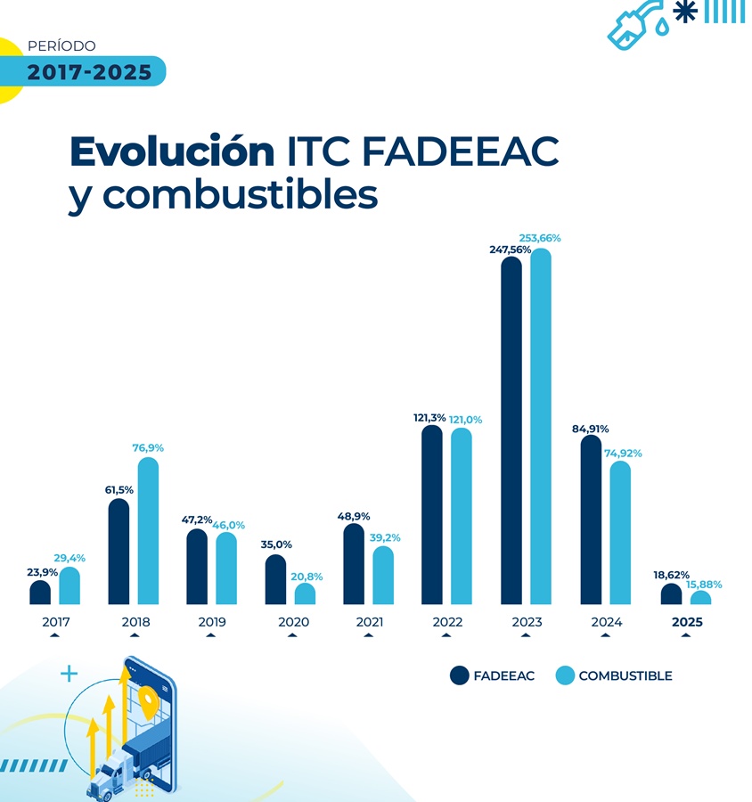 El Índice de Costos del Transporte (ICT), elaborado por FADEEAC, tuvo en julio un aumento del 4,03%, el más elevado del 2025 y el mayor en los últimos doce meses. Esta aceleración marca un quiebre tras varios meses de incrementos moderados y eleva la suba acumulada en el año al 18,6%, con una variación interanual del 32,6%.